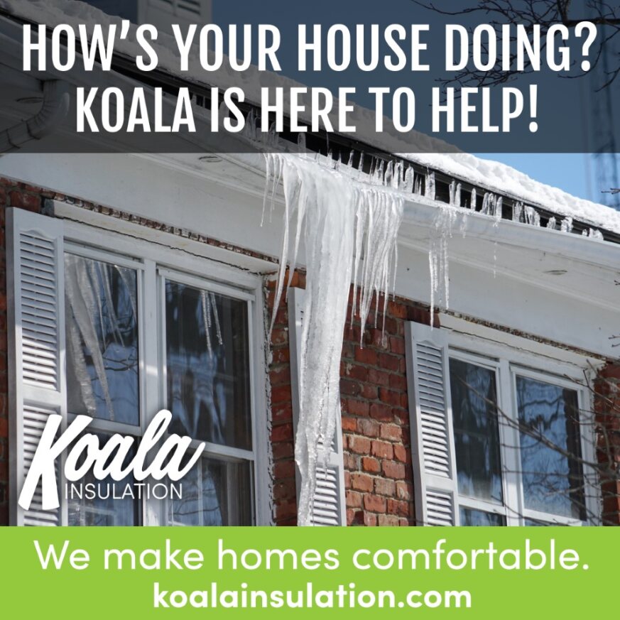 Insulation in the attic or just below the roof line keeps the heat inside the living spaces where it belongs. This means less heat escaping to melt the snow on the roof.